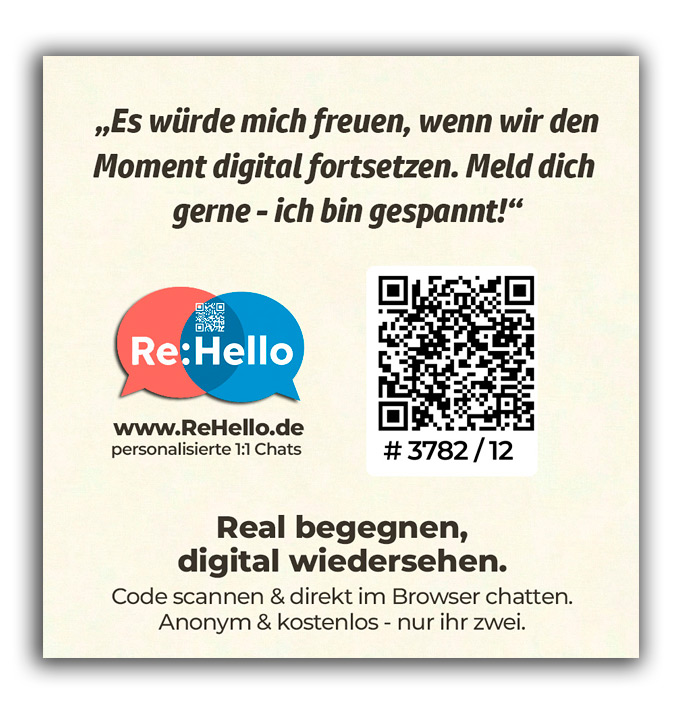 Sekunden eine Brücke vom kurzen analogen Moment in den entspannten digitalen Chat. Perfekt für Smalltalk-Enden oder den schnellen Mutausbruch im Vorbeigehen.