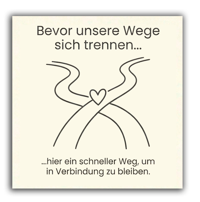 - Außen (Der Dringlichkeits-Faktor): Bevor sich die Wege trennen ... hier ein schneller Weg, um in Verbindung zu bleiben.