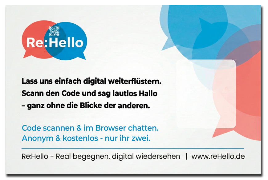 • Innen (Der Hook): Lass uns einfach digital weiterflüstern. Scann den Code und sag lautlos Hallo - ganz ohne die Blicke der anderen.