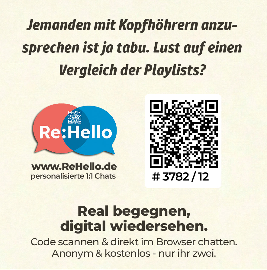 - Innen (Der Hook): Jemanden mit Kopfhörern anzusprechen ist ja tabu. Lust auf einen Vergleich der Playlists?