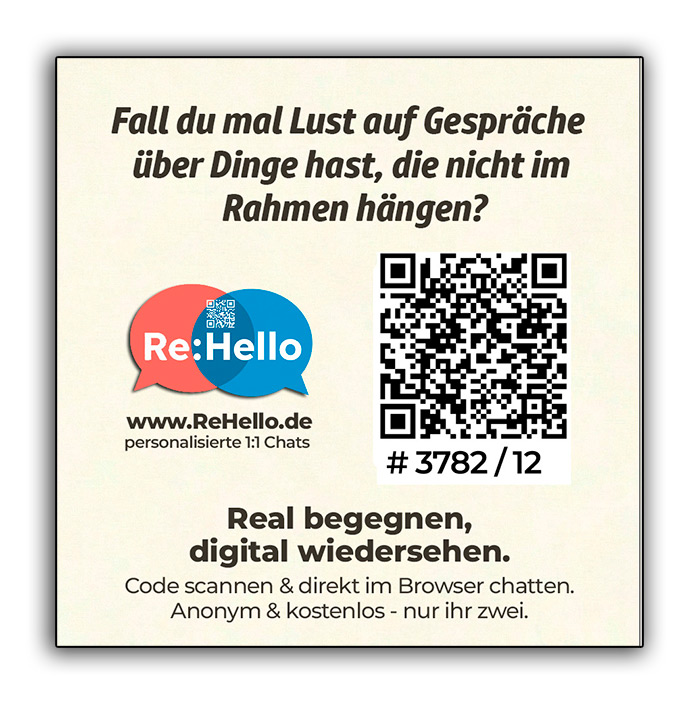 Du stehst vor einem Gemälde, eine interessante Person steht zwei Meter weiter und betrachtet dasselbe Bild. Die Atmosphäre ist intellektuell, leise und ehrfürchtig. Hingehen und einen Spruch klopfen? Fühlt sich falsch an. Aber einfach gehen und die Chance verpassen? Kommt nicht in die Tüte.